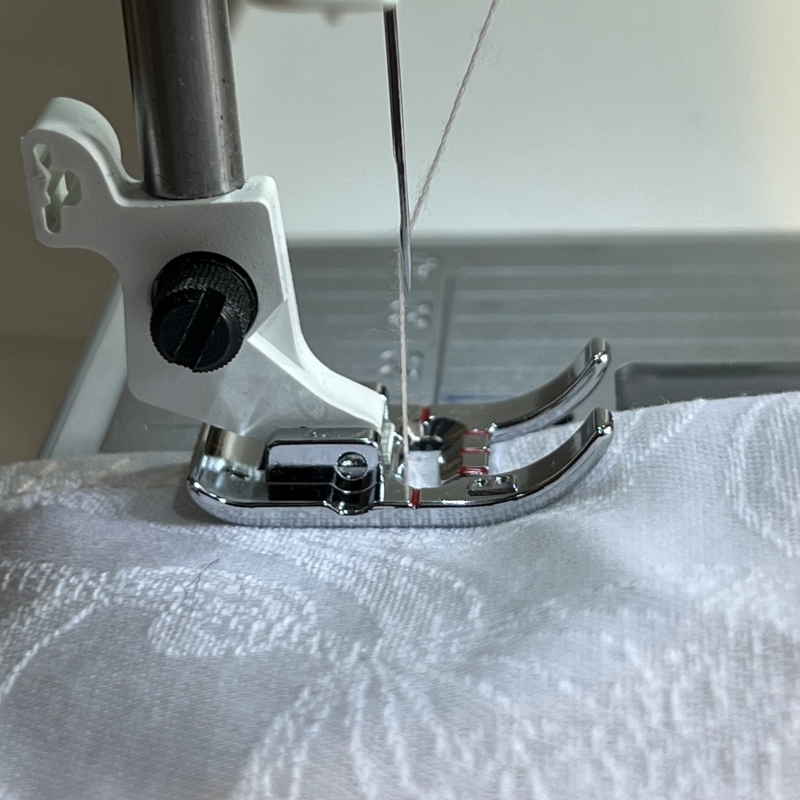 Conseils d'entretien : Nettoyez régulièrement le pied avec un chiffon doux pour enlever les résidus de fil et de tissu. Vérifiez périodiquement l'alignement pour garantir des coutures précises.