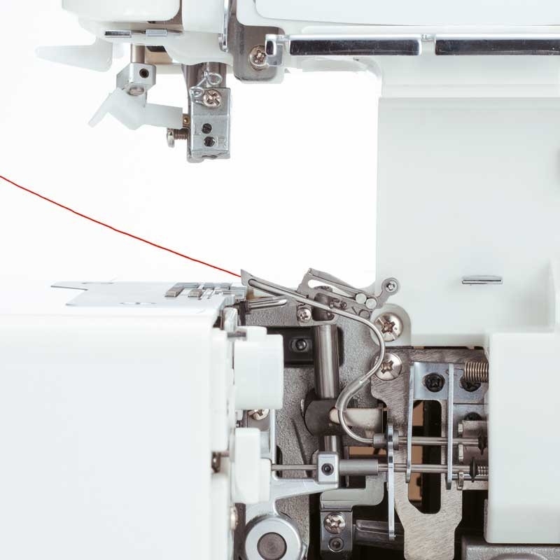 Surjeteuse Juki enfilage automatique, la MO1000 est la première surjeteuse à enfilage automatique de la gamme Juki.